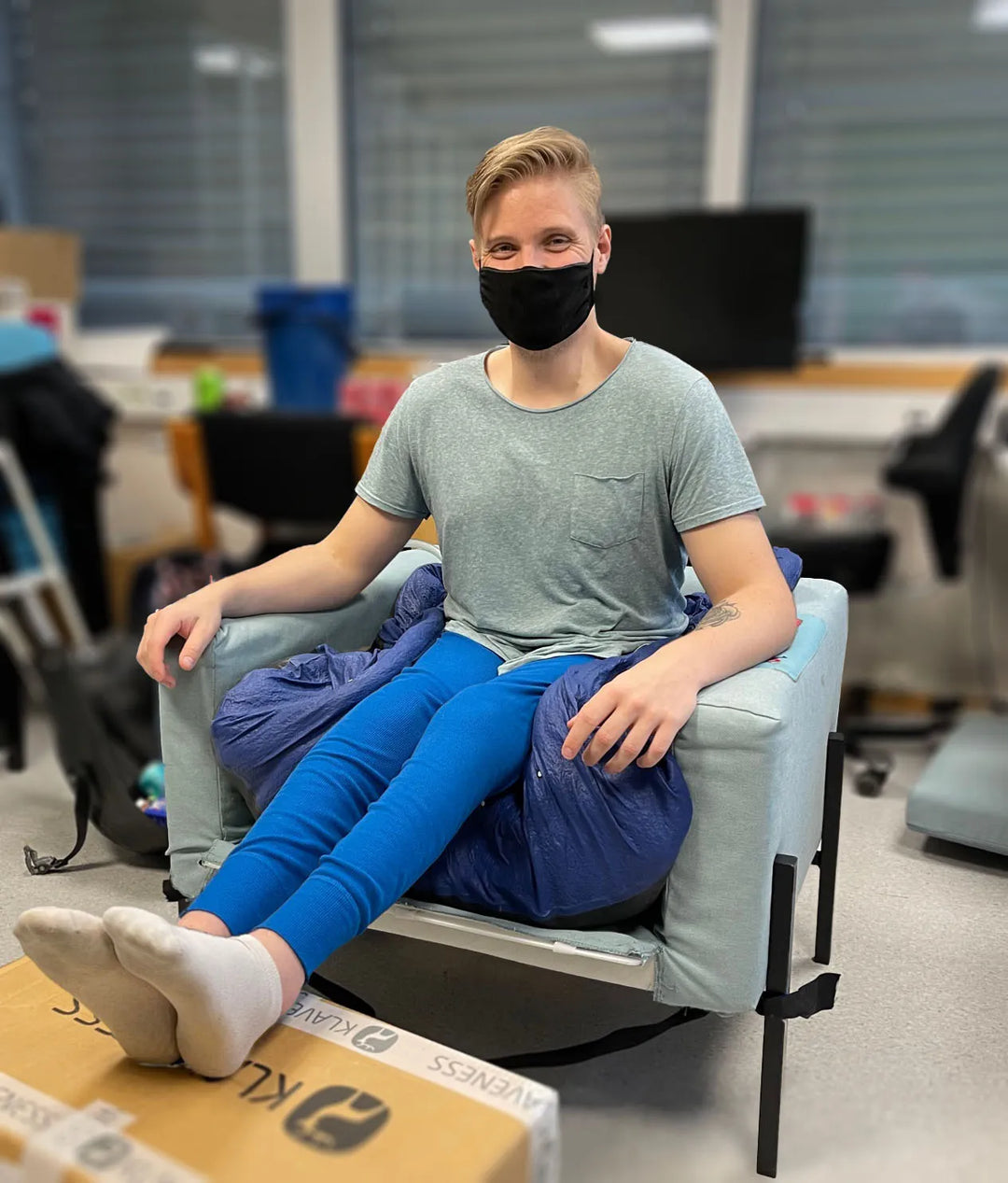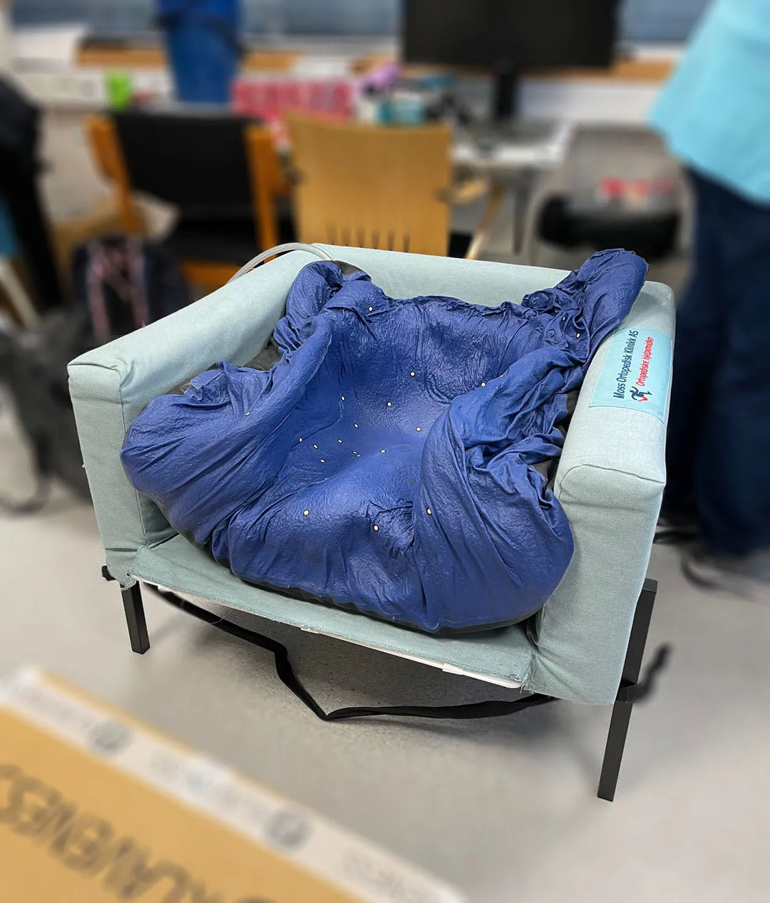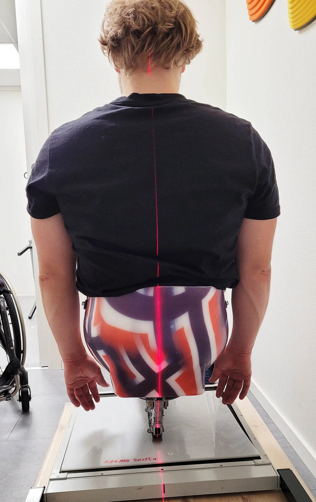 Vi finner den beste sitteposisjonen og utformingen på setet, og sitter igjen med et avtrykk vi kan ta 3D-scan av.