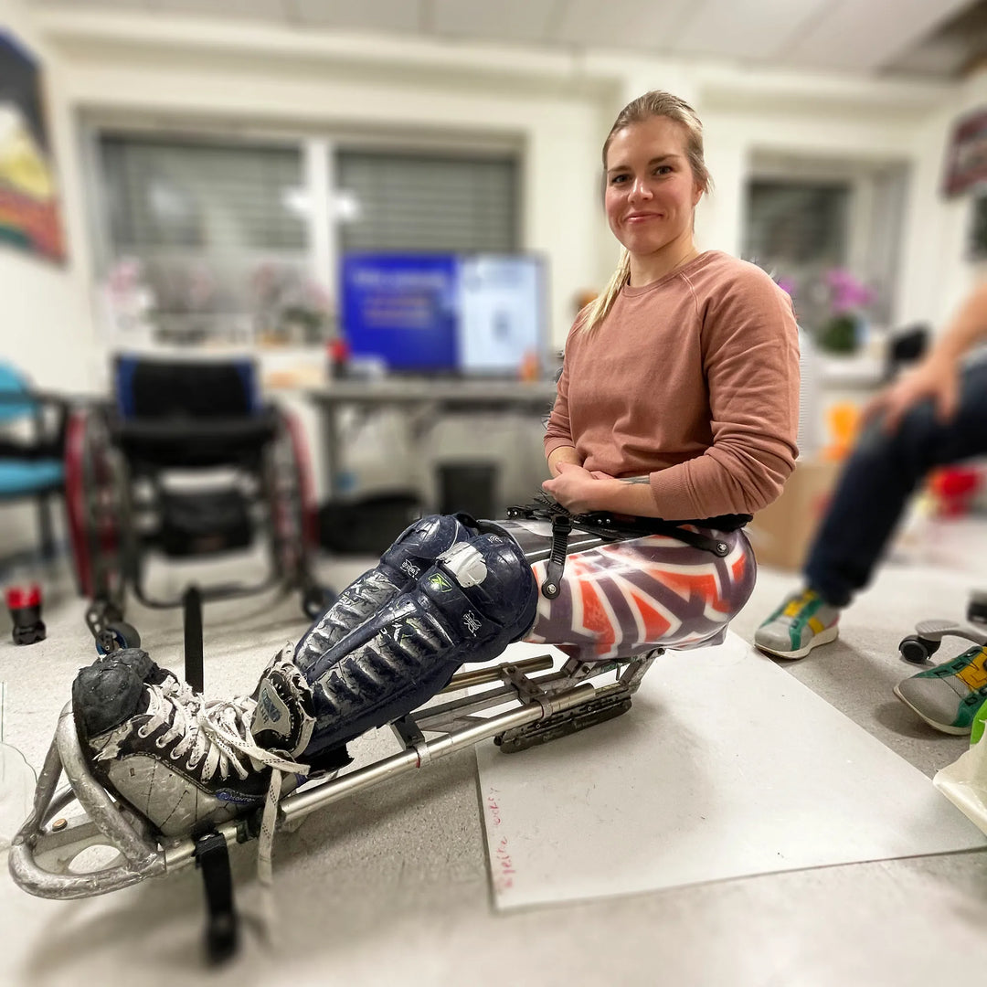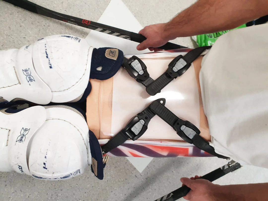 På den avsluttende runden med å ferdigstille setet monterer vi det på spillerens hockeykjelke.